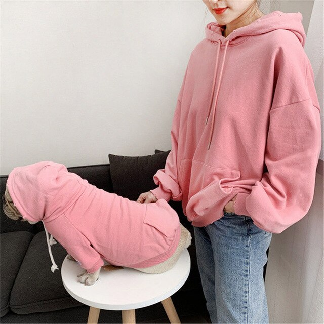New2019 warm Pet Matching Hoodie Spring Dog Clothes For French Bulldog Solid Dog Coat Warm Family Clothes For Dogs Puppy Costume